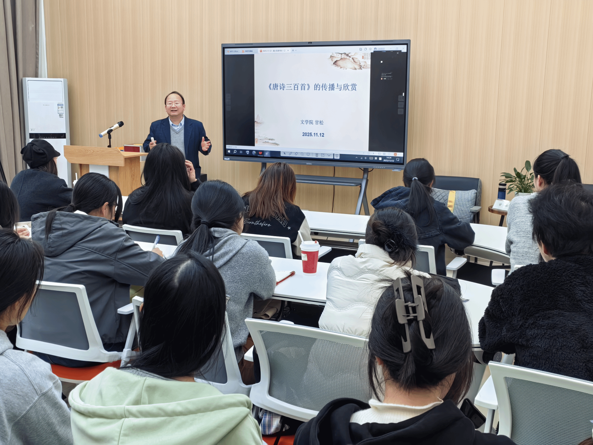 滨湖校区举办“阅+历”读书讲堂第五讲:甘松教授深度解析《唐诗三百首》的传播与欣赏