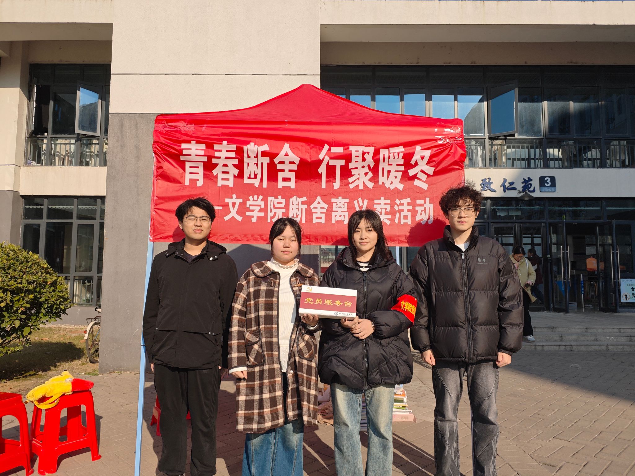 为进一步深化优良寝风创建,落实学生宿舍安全卫生整治有关要求,也为培育大学生环保理念与奉献精神,以“断舍离”理念为纽带涵养健康积极的生活氛围,近日,由文学院团委、文学院学生党支部发起的“青春断舍 行聚暖冬”断舍离义卖活动在滨湖校区温情开幕。活动鼓励同学们参与校园环保行动,将宿舍闲置、废旧物品再利用,举行义卖活动,并将义卖所得投入“暖心助老”公益实践活动,赴黄麓敬老院开展志愿服务,让青春善意在寒冬中传递温暖,让心灵在整理与奉献中收获轻盈。