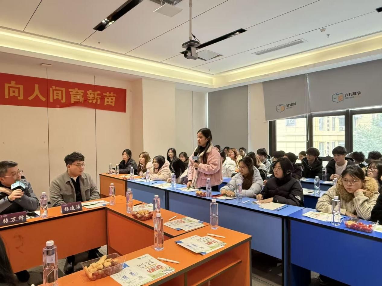 张万锋详细介绍公司发展历程、业务板块、校区分布、企业文化及教师成长体系。周晏斌勉励同学们坚守教育初心,以爱心、耐心和童心投身教育事业。席俊宏建议同学们提前做好职业规划,主动了解就业市场需求,积极参与实践锻炼。
