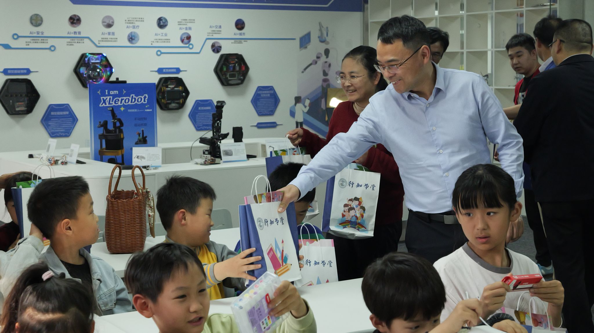 活动现场,计算机与人工智能学院“AI 科普团”成员带来生动有趣的AI科普授课,用通俗语言、互动演示拆解人工智能原理,让孩子们在趣味体验中感受科技魅力。学院领导慰问参与活动的小学生并赠送学习用品,以温情关怀点亮科学梦想。