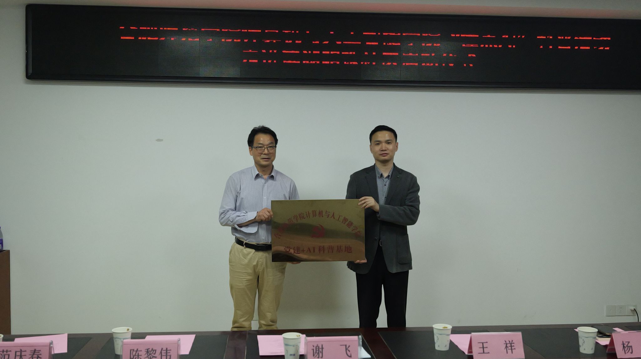 计算机与人工智能学院打破传统科普 “单次活动”局限,构建校社共建长效机制:王祥与屠新元共同为AI科普基地揭牌,标志着学院与滨湖明珠社区建立常态化合作平台,把高校专业师资、课程资源、科创成果精准导入社区,形成 “科普授课+实践体验+基地赋能”的闭环服务体系,实现从“送科普” 到“种科普”的转变。