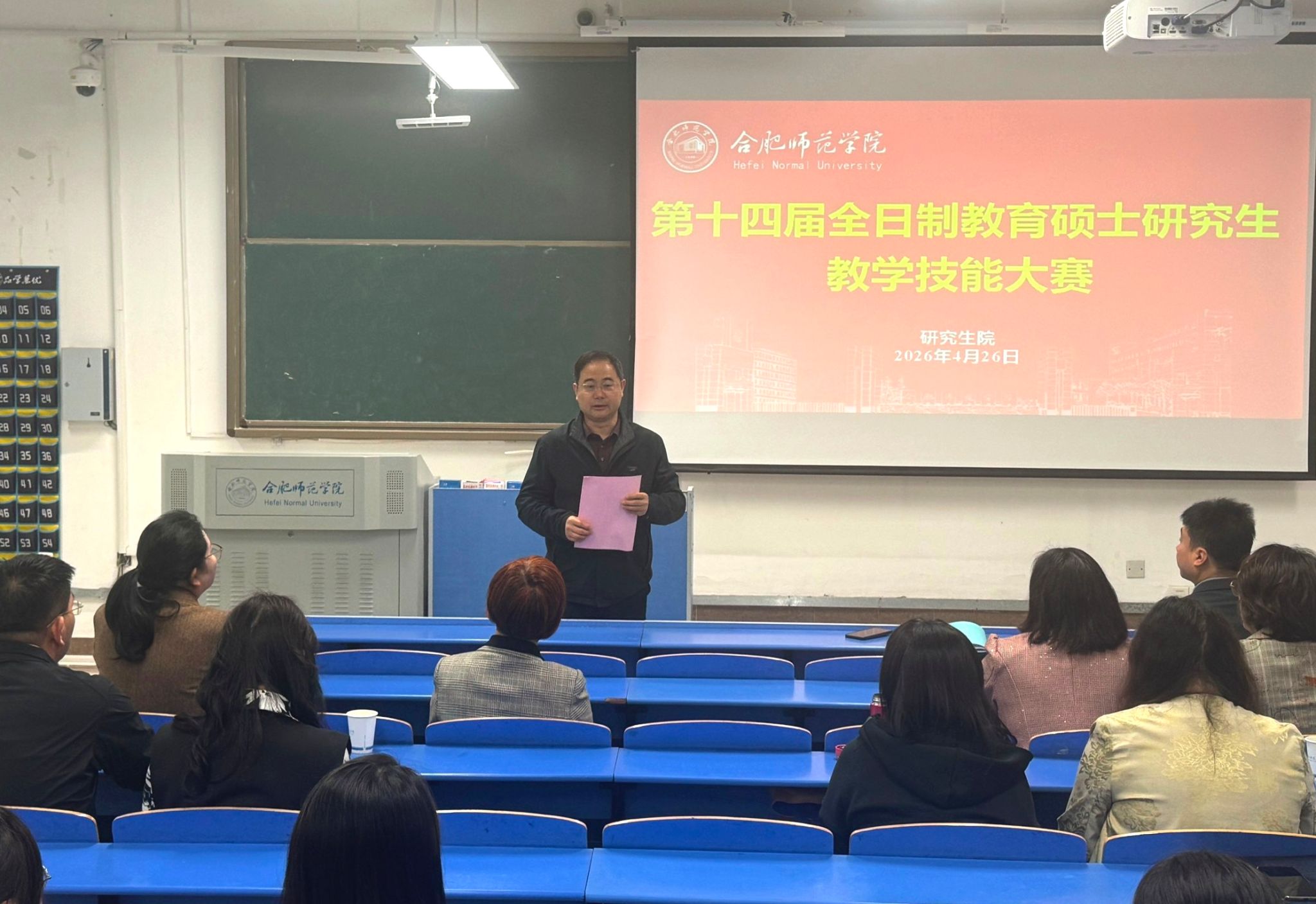 为夯实教育硕士研究生教学基本功,强化实践育人导向,4月26日,学校开展了第十四届全日制教育硕士研究生教学技能竞赛展示活动。赛前举办了简短的大赛启动仪式,校党委委员、副校长李学俊出席启动仪式并致辞,校内外评审专家、全体参赛学生、研究生院负责人和相关工作人员参加仪式,仪式由研究生院院长董华泽主持。