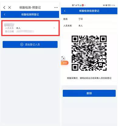 预登记成功后,页面展示个人简易信息,生成个人信息二维码。该二维码截图或下载打印后,可在全员核酸检测现场扫码使用,与出示安康码、身份证功能相同。每个人只需进行一次预登记即可,生成的个人信息二维码可以长久使用。