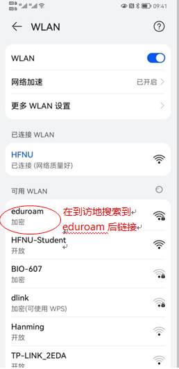 我校于2021年12月正式接入eduroam,实现了我校上网账户的全球eduroam联盟(加入联盟106个国家和地区的高校、科研院所)漫游。经过前期调试、试运行,现正式向广大师生和校外访客开放使用。使用方法如下: