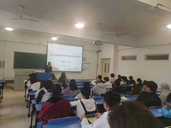 本网讯 4月29日上午,根据马克思主义学院“行知讲堂”学术讲座既定安排,继续教育学院院长吴文副教授应邀在锦绣校区逸夫楼A102作《习近平法治思想科学内涵及其现实意义》学术讲座。讲座吸引来自全校各专业百余人聆听。