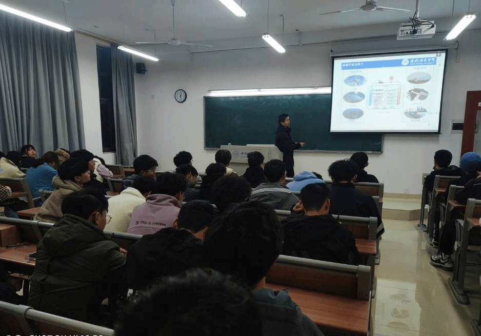 在互动环节,张老师与同学们对锂离子电池隔膜的工作机制、需要满足的技术参数,以及锂电池隔膜的研究热点等进行了热烈而深入的讨论。报告的最后,张天文博士结合相关知识的学习,鼓励同学们利用自己所学、发挥自身所长,积极投身我国新能源发展的事业中去,为建设生态文明的现代化强国贡献自己的力量。