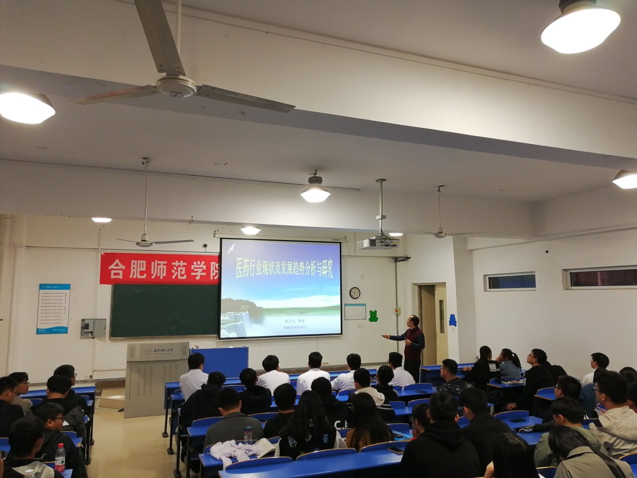 化学与化学工程学院陈虎副教授做“医药行业现状及发展趋势分析与研究”学术报告