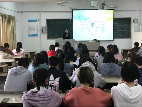 本网讯 10月25日,由外国语学院西班牙语系张照老师在博约楼504教室为2018级全体西班牙语学生带来“行知讲堂”系列学术报告之“西班牙语DELE B2等级考试说明及口语、写作专项备考准备”的讲座。