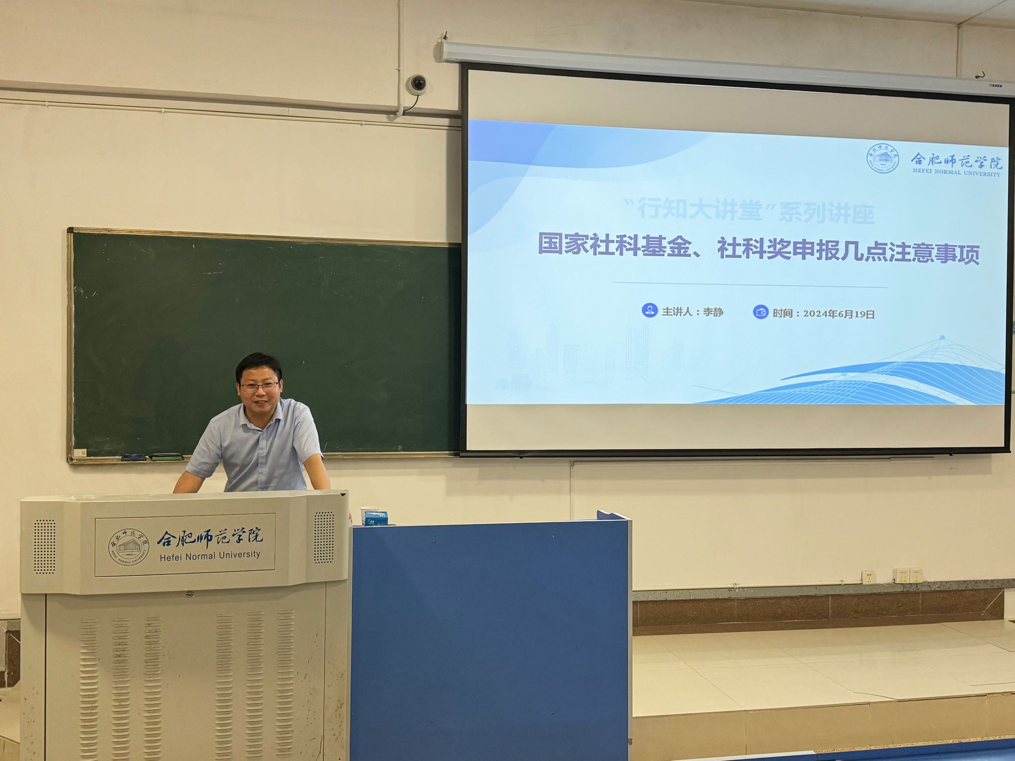 6月20日下午,安徽大学人文社科处副处长(主持工作)、国别与区域研究院院长、创新发展研究院常务副院长李静教授应邀来院作“国家社科基金、社科奖申报几点注意事项”学术讲座。科研处、相关二级学院等单位负责人及各二级学院骨干教师代表共80余人参加讲座,讲座由科研处处长胡昂主持。