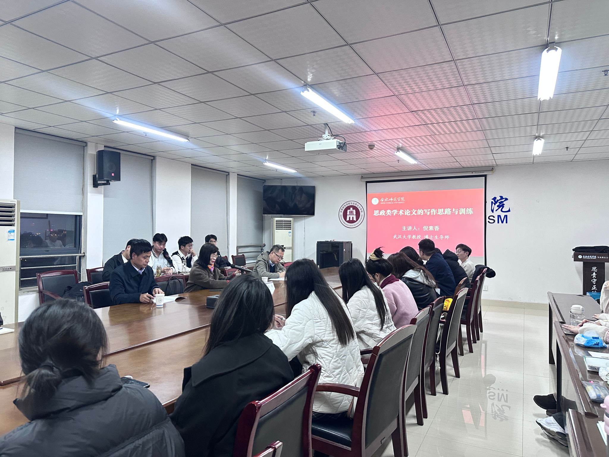 为助力2025级学科教学(思政)专业研究生夯实学术研究基础、提升学术论文写作水平,11月21日晚,我院特邀武汉大学倪素香教授,在锦绣校区行知楼1610会议室作“思政类学术论文的写作思路与训练”主题指导交流讲座。本次活动由研究生教学部主任朱玉利主持。