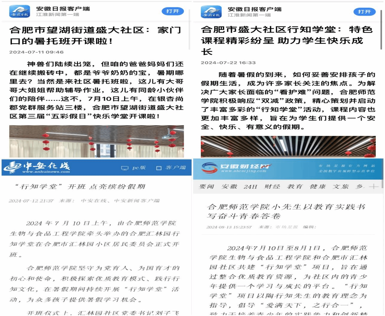 《中青校园》《大皖新闻》《安徽日报》等多家媒体报道生物与食品工程学院行知学堂