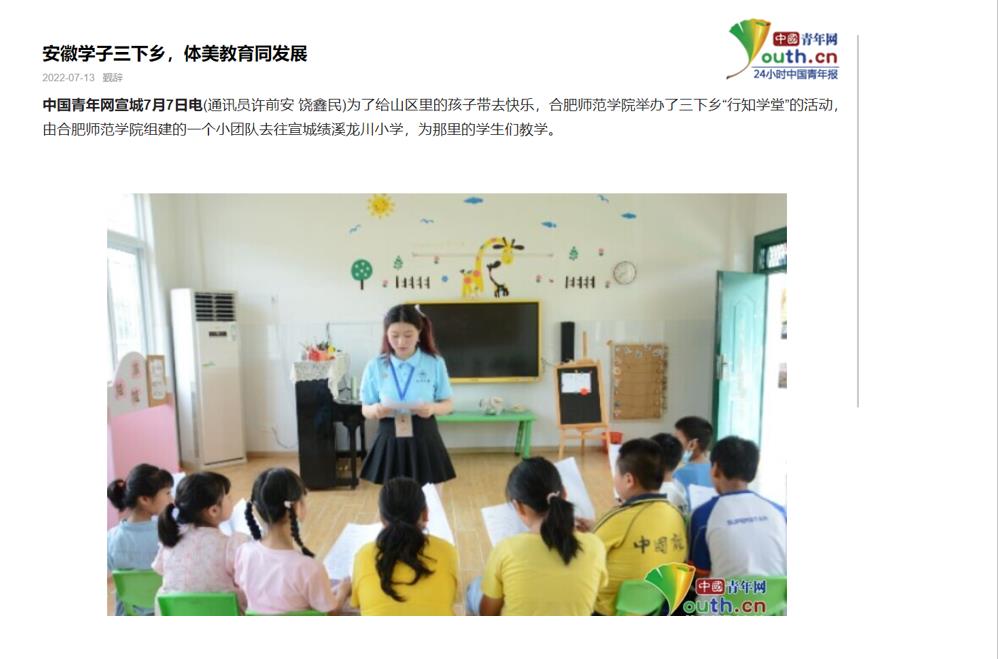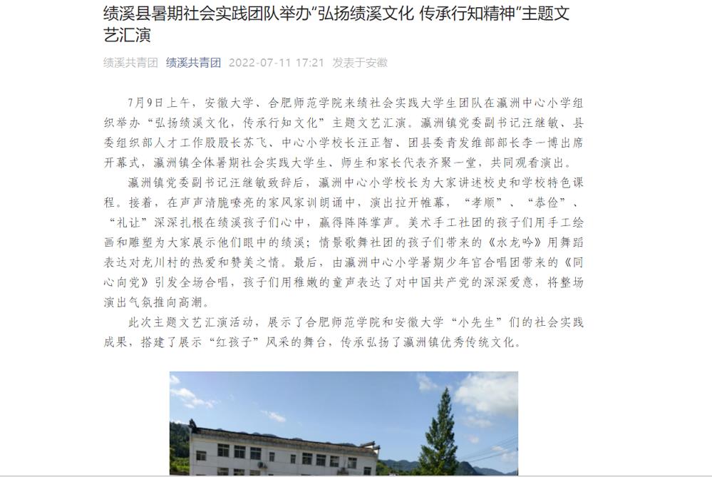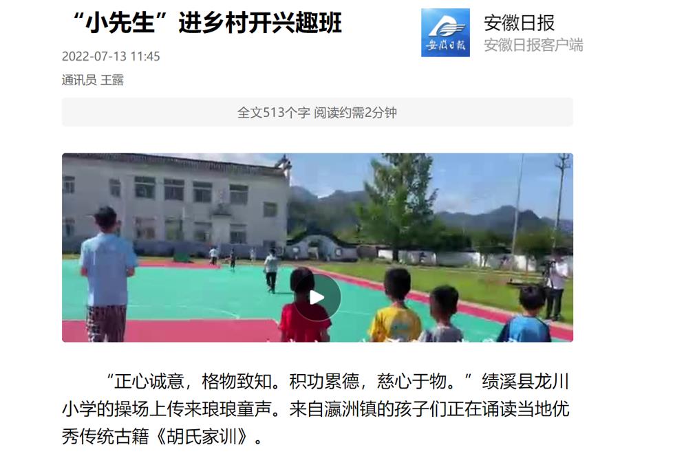 本网讯 近日,院团委绩溪行知学堂先后受到中国青年网、安徽日报客户端、团绩溪县委微信公众号等多家媒体报道。