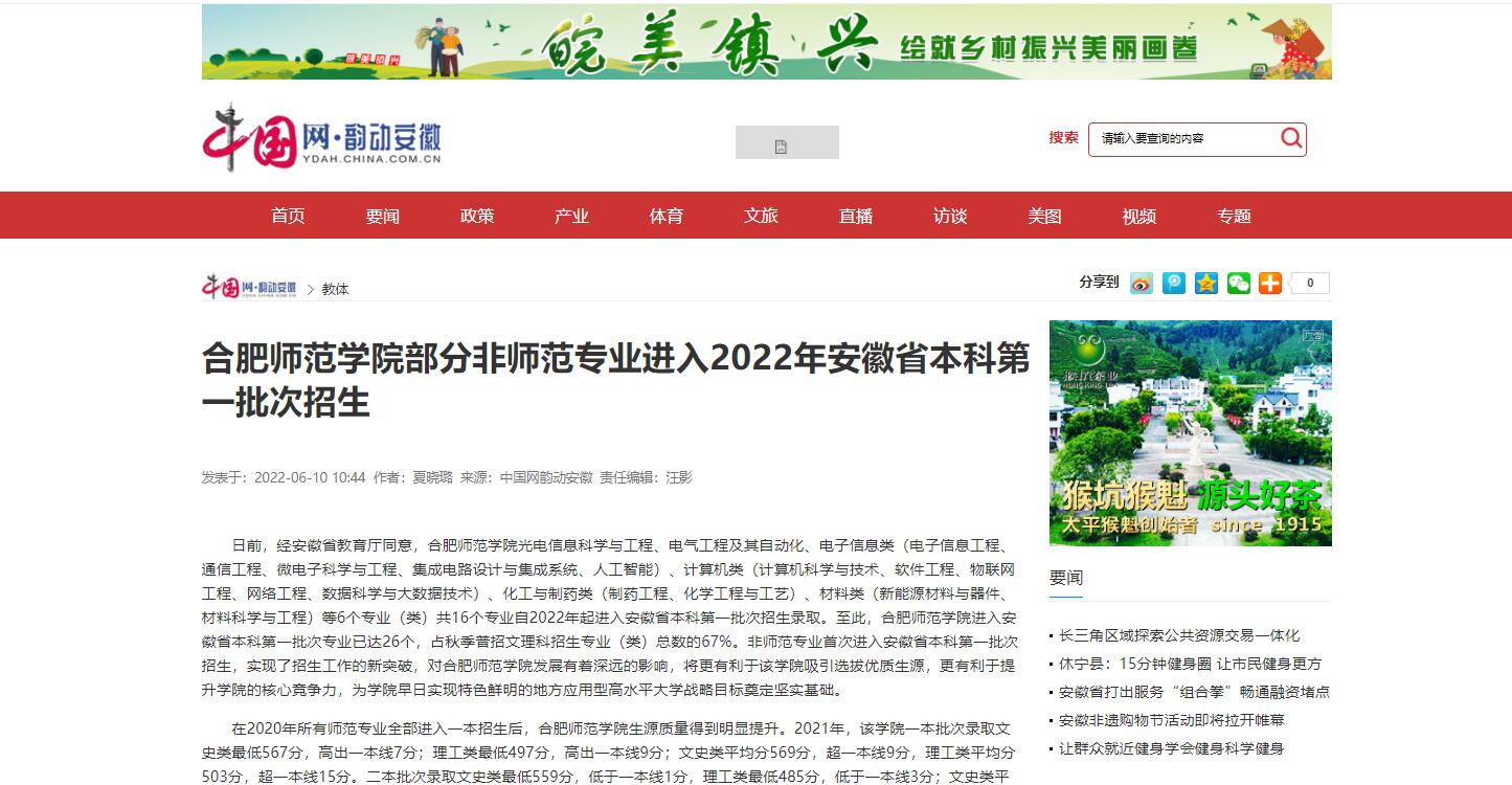 6月10日,中国网韵动安徽、凤凰网安徽对此进行了报道。(宣传部)