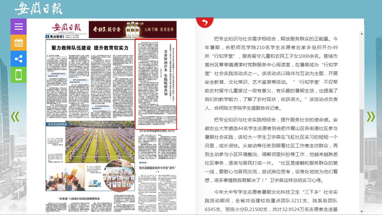 安徽日报再次报道我院暑期“行知学堂”实践活动