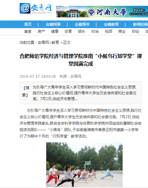 7月17日,安青网对此进行了专题报道。(经济与管理学院)