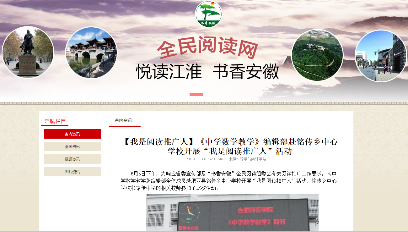 安徽全民阅读网报道我院《中学数学教学》编辑部开展“我是阅读推广人”活动